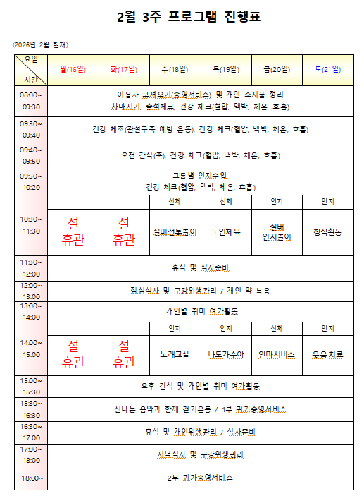 26년 2월 3주 활동계획