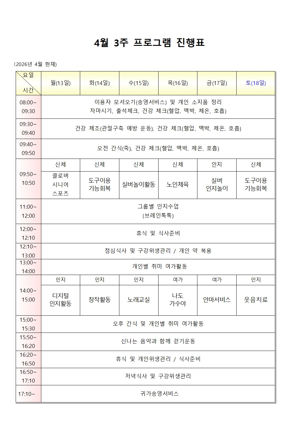 26년 4월 3주 활동계획
